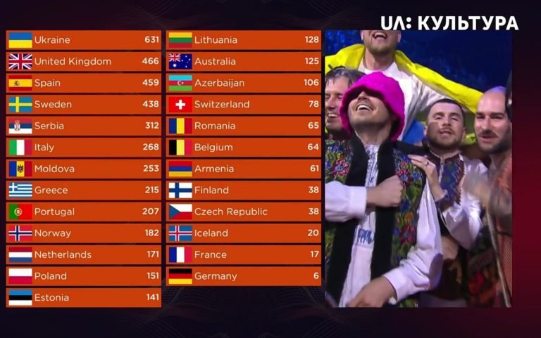 Таблица результатов Евровидение 2022. Скриншот UA:Культура