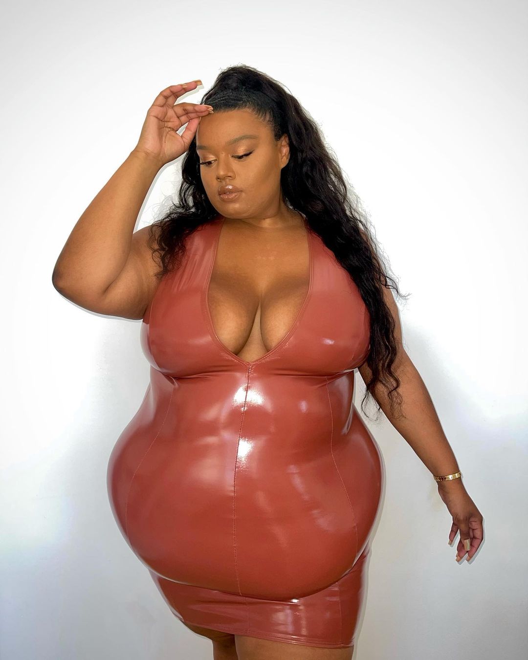Но самым впечатляющим в ее гардеробе стало коричневое платье из латекса. Забыть его просто невозможно.