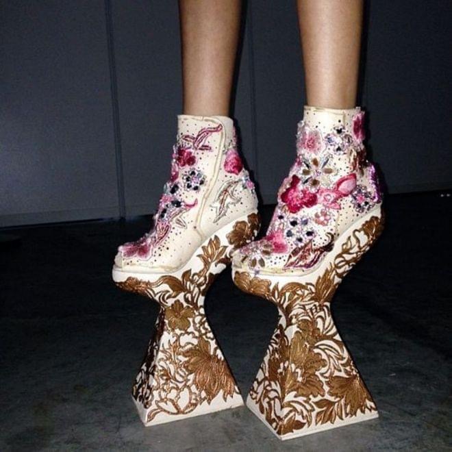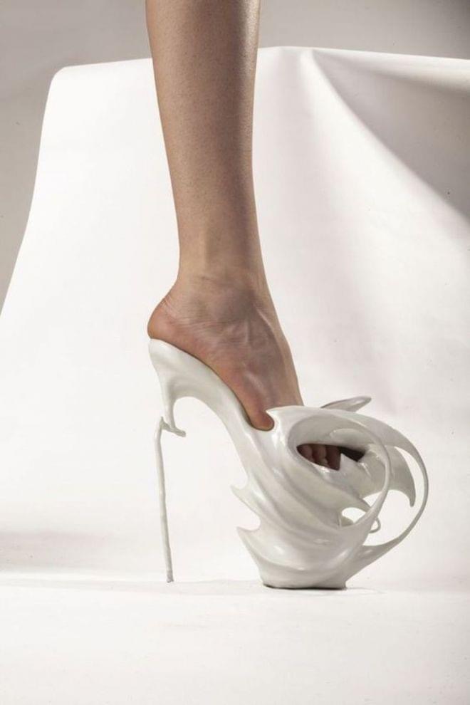 Как думаете, сколько обычно у каждой девушки пар обув ? У каждой уважающей себя красотки обязательно хранится обувь, в которой можно лишь дойти до машины и обратно. Очень часто человеческая фантазия может напугать своим полётом. Дизайнеры ни капли не поленились и излили свою неимоверную фантазию на практически нереальную для носки обувь. Возможно, для кого-то они стали вишенкой на торте в их образе.