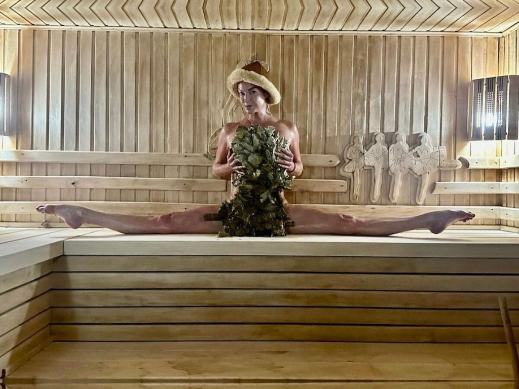 «Померила обновленную мою русскую домашнюю баню своим мерилом моего шпагата. Спасибо моим друзьям за такую работу!» – заявила она.