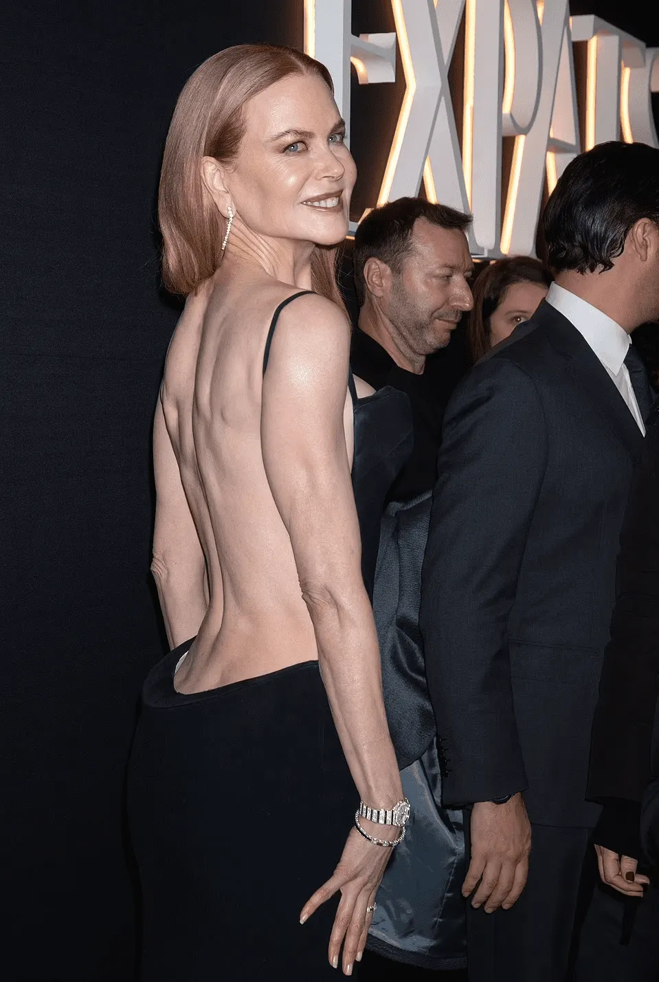 Кинозвезда стала гостьей премьеры сериала Amazon Prime Video «Экспаты» в Нью-Йорке. 56-летняя голливудская актриса решила обнажиться в холодную погоду. Она продемонстрировала стройную фигуру в пикантном черном платье с открытой спиной, с воротником-хомутом на лифе и высоким разрезом на юбке.