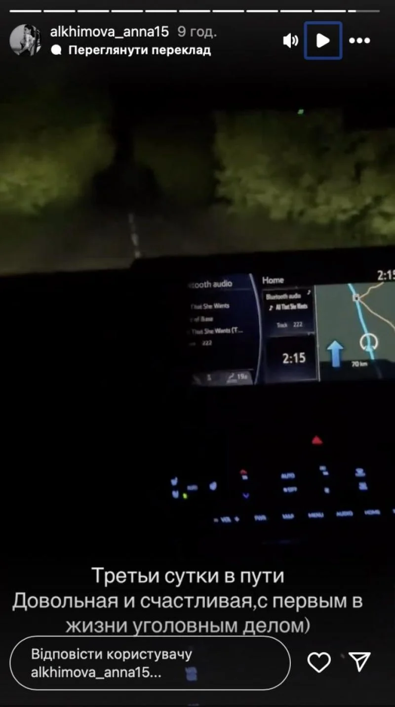 В свою очередь, реакция Алхим на уголовное дело не заставила себя ждать. В фотоблоге она показала кадры дороги и на русском языке написала: «Третие сутки в пути. Довольна и счастлива с первым в жизни уголовным делом».